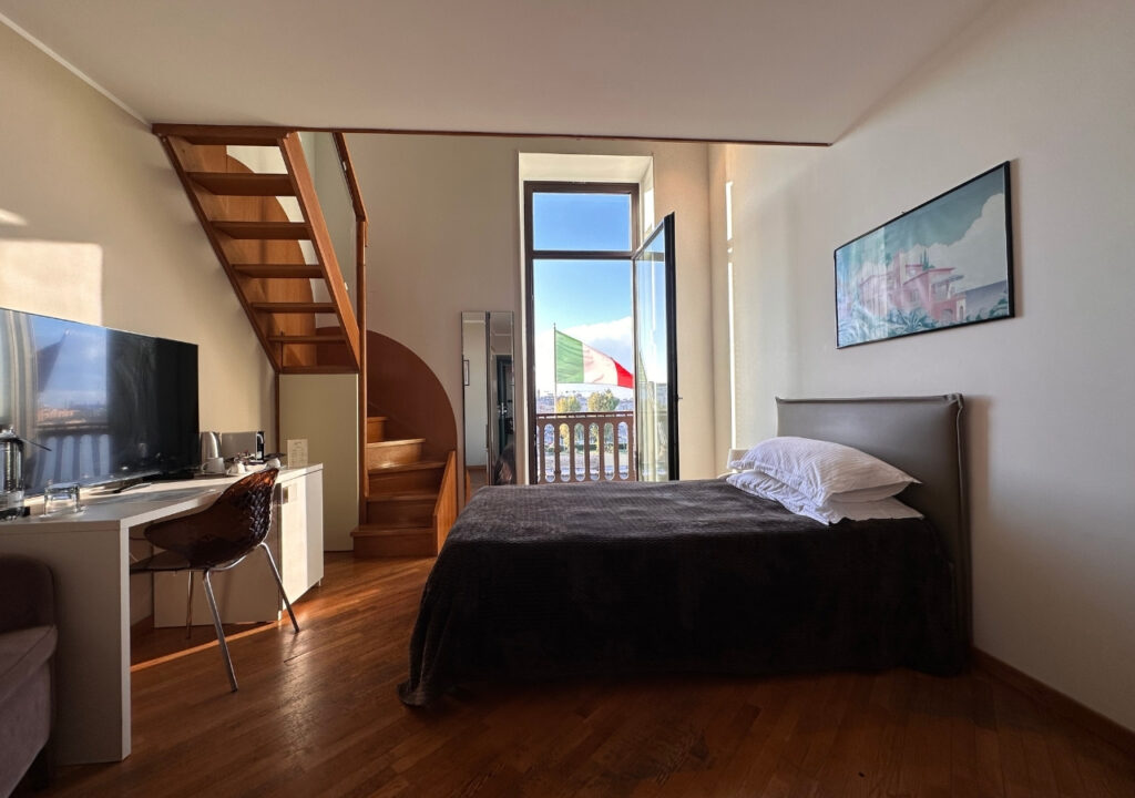 Our Exclusive rooms, arranged on two levels with two private bathrooms, combine elegance and intimacy. The wooden staircase and parquet flooring create a warm and refined atmosphere—perfect for enjoying an unforgettable sunset in total relaxation.